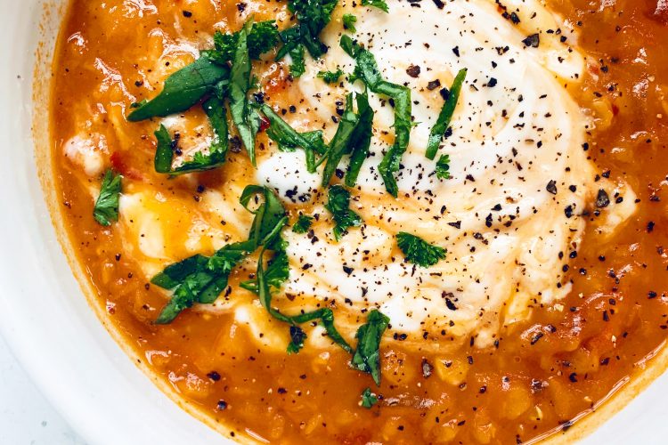 This soup is so nourishing, cheap and quick to make. You only need a handful of pantry items to make this and you can add in any extra veggies you might have that need using up. This recipe serves 4 so you can keep it in the fridge so you’re covered for lunches for a few days.